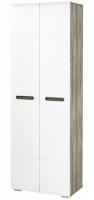 Модель имеет две распашные створки, изготовленные из МДФ, ручки являются частью фасадов, внутренняя комплектация состоит из вместительного отделения со штангой для одежды на вешалках и двух ниш для хранения трикотажа или обуви.